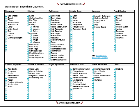 Printable Dorm Room Essentials Checklist
